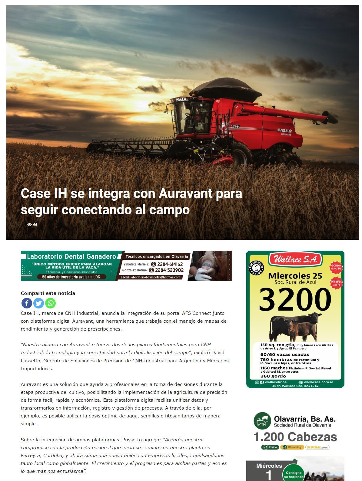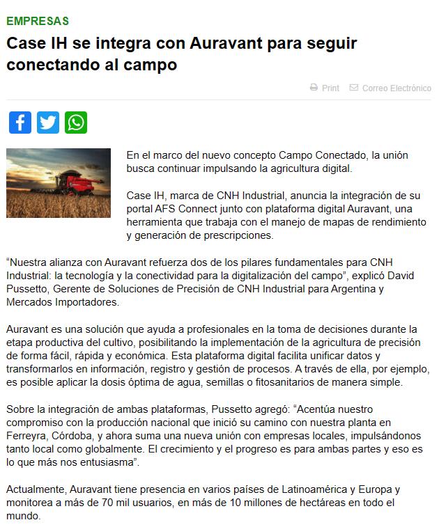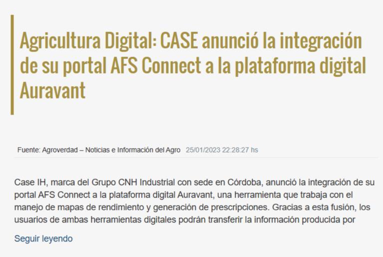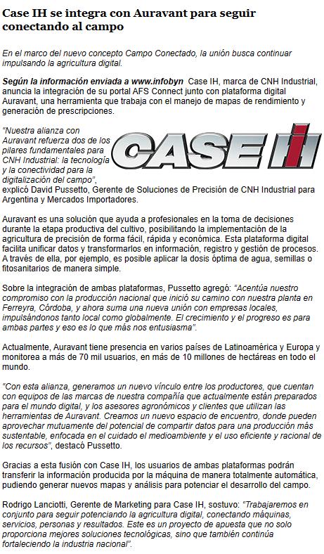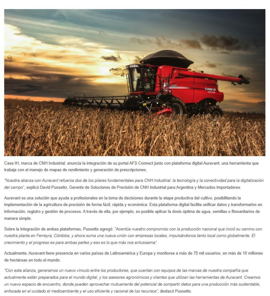 Case IH se integra con Auravant para seguir conectando al campo