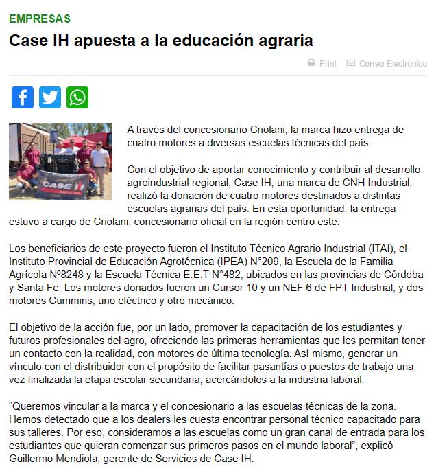 Case IH apuesta a la educación agraria