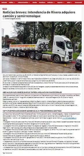 Intendencia de Rivera adquiere camión y semirremolque IVECO