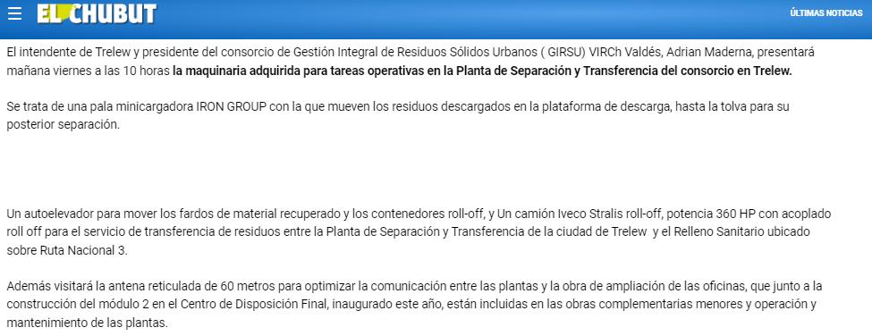 Trelew adquirió camiones IVECO para la Planta de Separación y Transferencia