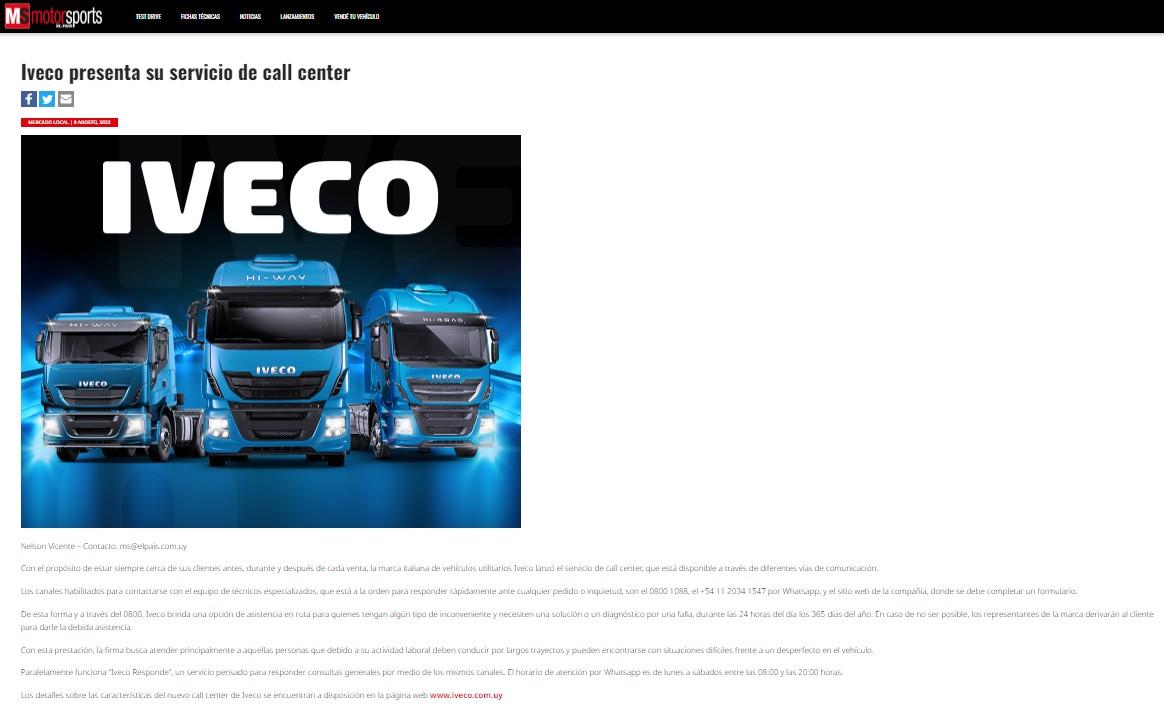 IVECO Uruguay presenta su servicio de call center exclusivo para clientes de la marca