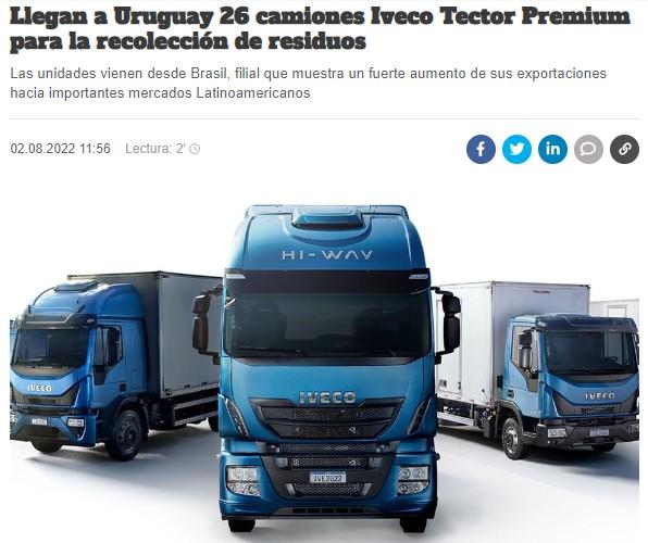 Llegan a Uruguay 26 camiones IVECO Tector para la recolección de residuos