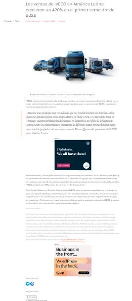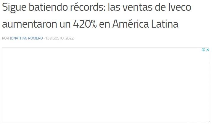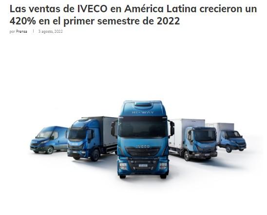 Las ventas de IVECO en América Latina crecieron un 420% en el primer semestre de 2022