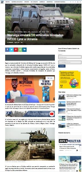 Noruega enviará 14 vehículos blindados IVECO Lynx a Ucrania