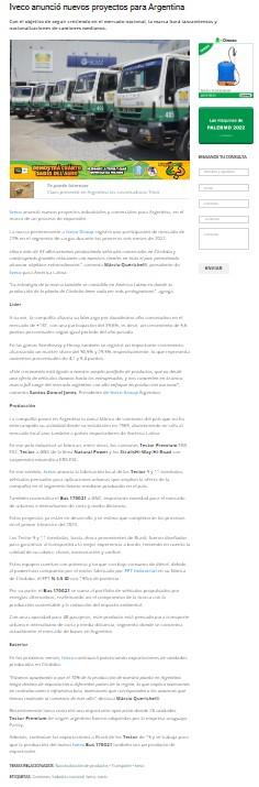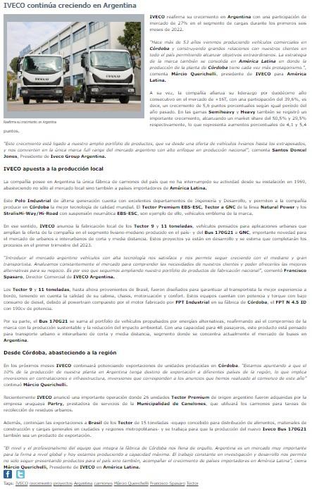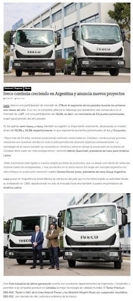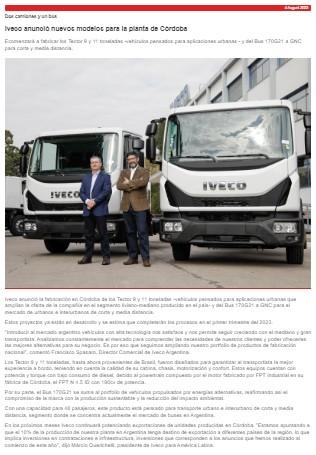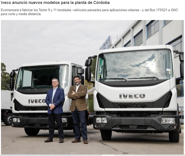 IVECO sigue creciendo y producirá el Tector 9 y Tector 11 toneladas y un bus a GNC en Córdoba