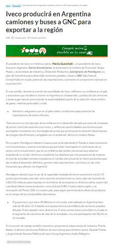 Iveco presentó su plan de inversiones para la producción de camiones y buses a GNC en el país