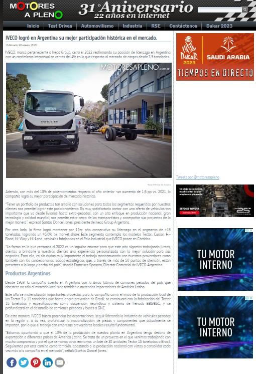 IVECO logró en 2022 un récord histórico en el mercado argentino