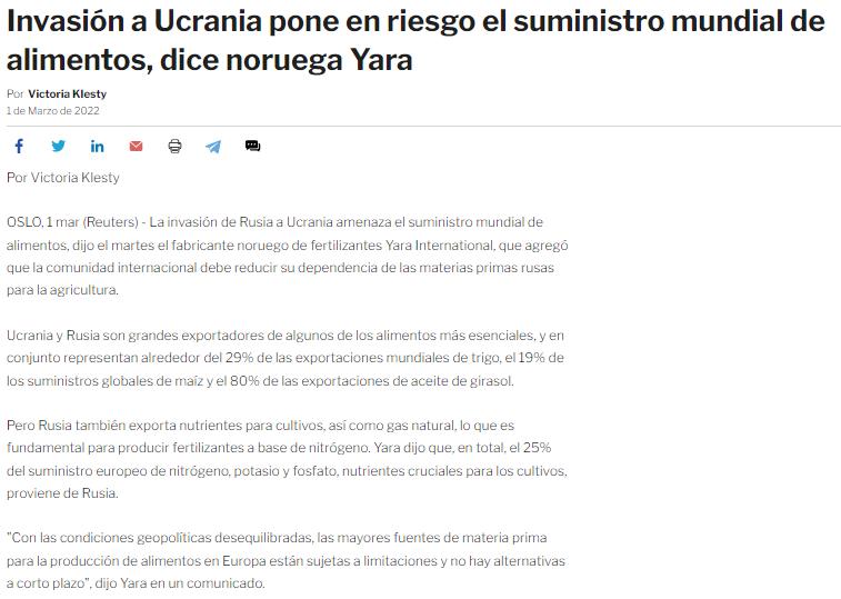 Yara y la guerra deUcraniaRusia-