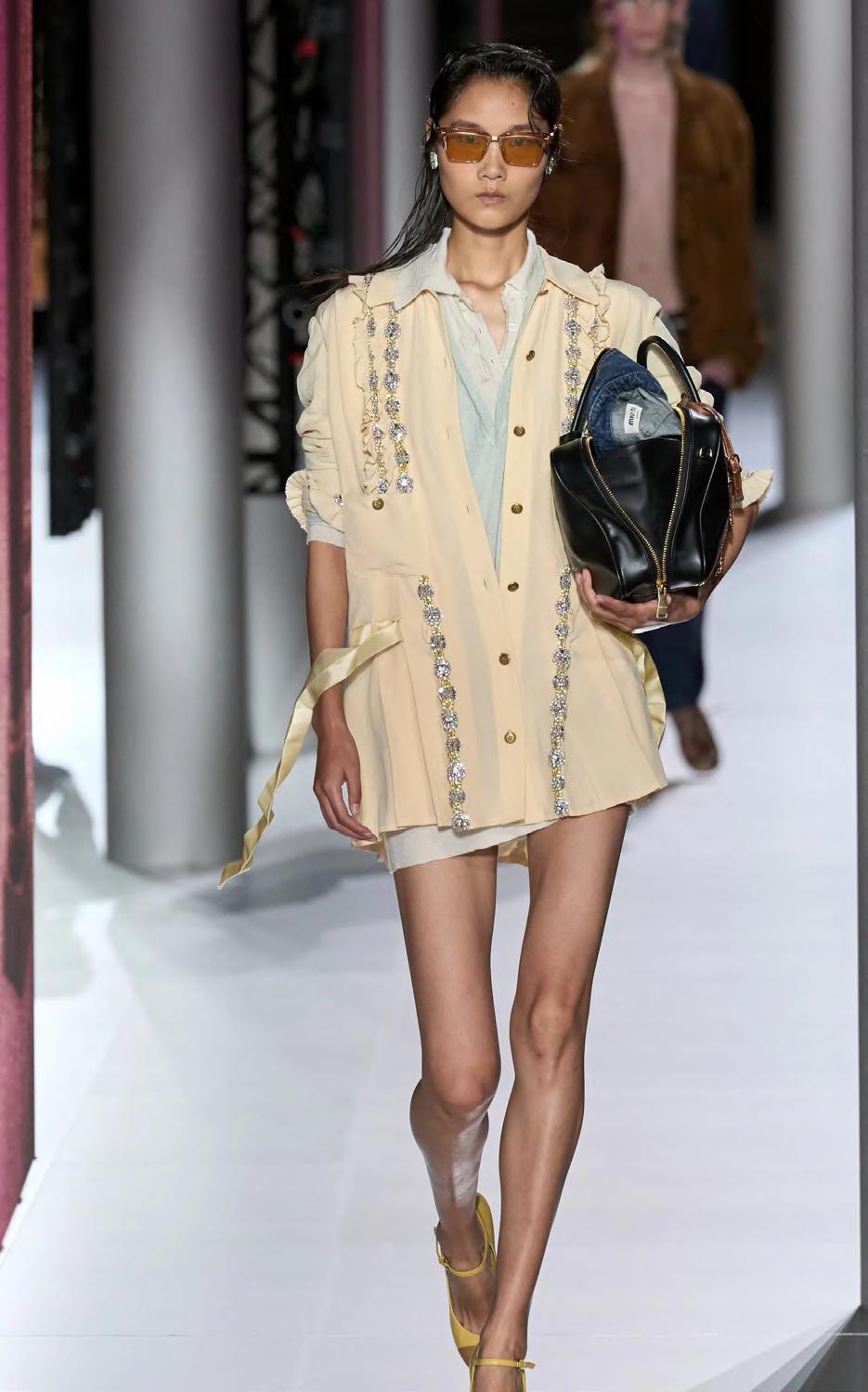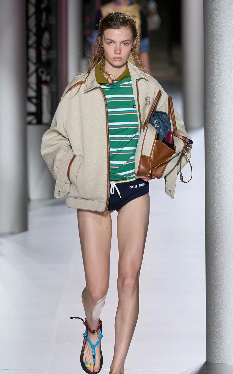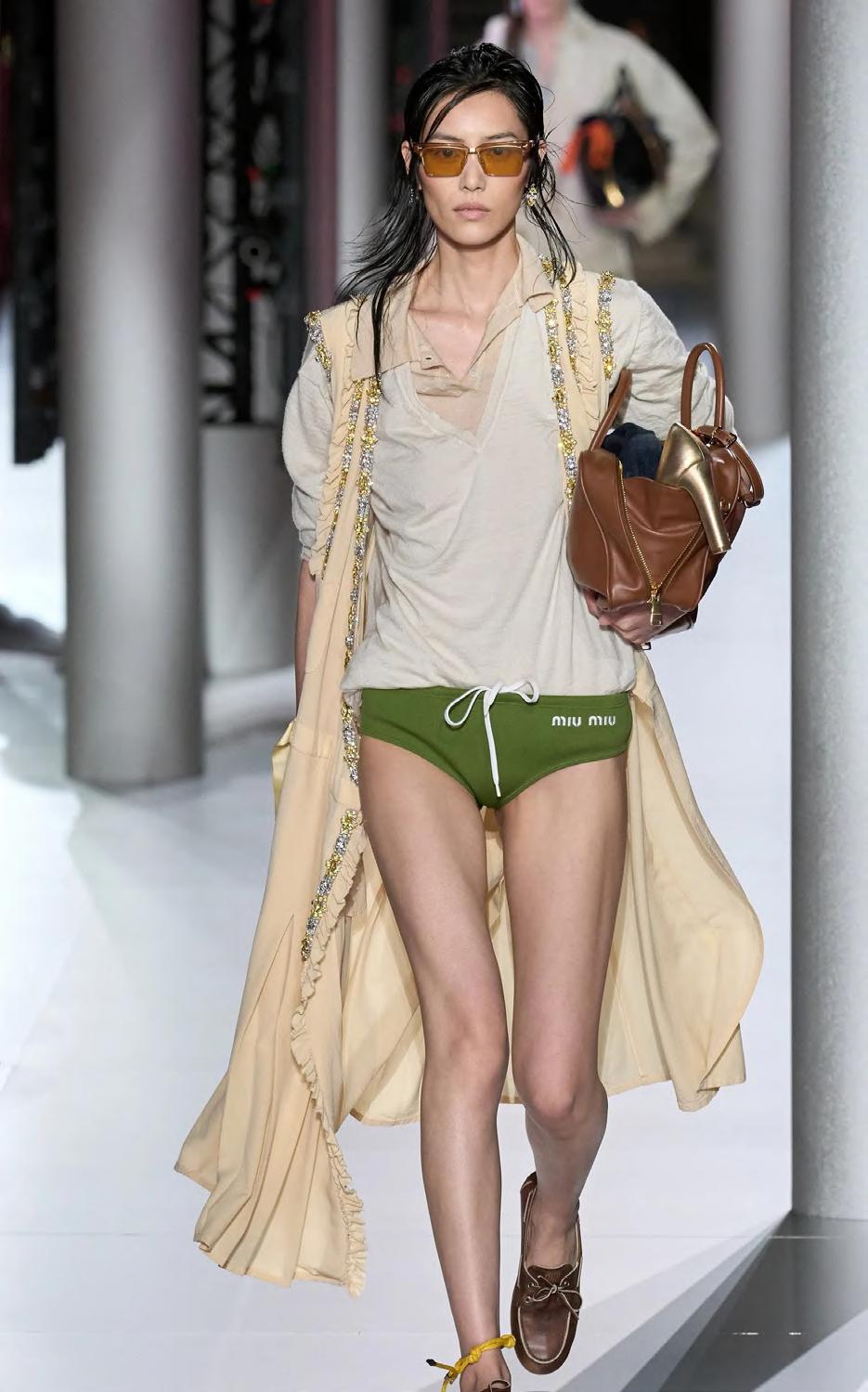 Con una fuerte dosis de juventud renovada el avance de la casa de moda se abre paso a lo largo de las pasarelas internacionales, dando un vuelco a lo que sucede y estará entonces sucediendo en las tendencias internacionales para la temporada de calor 2024. La primavera verano para Miu Miu es muy jovial, confiada y de alta energía