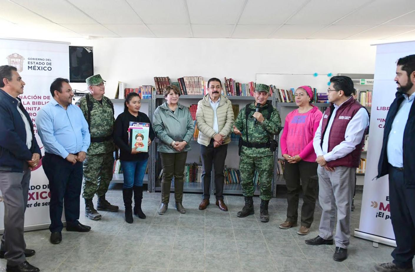 Durante su recorrido por la comunidad, la Maestra Delfina Gómez hizo entrega de 11 mil 113 libros a la Biblioteca Comunitaria “Ing. Álvaro Antonio Cárdenas Navarro,” los cuales fueron donados por la ciudadanía a través de la jornada "Kilómetro del Libro: Donar un libro refuerza el poder de la educación", convocada por la Secretaría de Educación, Ciencia, Tecnología e Innovación (SECTI).