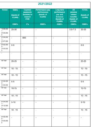 In line with the HM Treasury requirements, some previous accounts disclosures relating to staff costs are now required to be included in the staff report section of the annual report instead. The following tables link to data contained in the TAC and are included here for ease of formatting for the annual report. They should not be included in the annual accounts and these tables are not a complete list of numerical disclosures for the staff report.