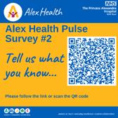 There’s one week left to take part in the second Alex Health Pulse Survey. These 40-second surveys measure the awareness of Alex Health and how it will improve our work at PAHT. Please use the QR code or link to take part.