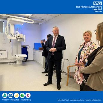 The Rt Hon Andrew Stephenson CBE MP, Minister of State (Minister for Health and Secondary Care) attended alongside Julie Marson, MP for Hertford and Bishop’s Stortford, to see the modernised X-ray rooms and ultrasound services, and to meet with PAHT colleagues. This is part of our plans to support quicker and more local access to diagnostic tests close to patients’ homes.