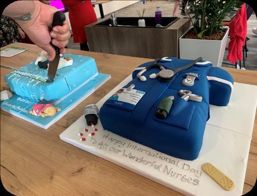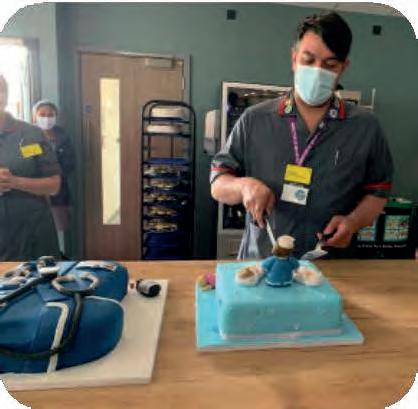 To mark the special occasions, we took part in a range of celebration events including an awards ceremony, where we presented a Patient Panel award to Jack Pope in recognition of his support of women and families. We also delivered special treats to the amazing teams, with celebration cakes (pictured being cut by Giuseppe Labriola, formerly director of midwifery and assistant chief nurse and now deputy chief nurse, right).