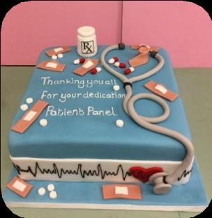 Pictured: Right, Ann Nutt, chair, cutting the cake the Patient Panel gifted for the occasion.