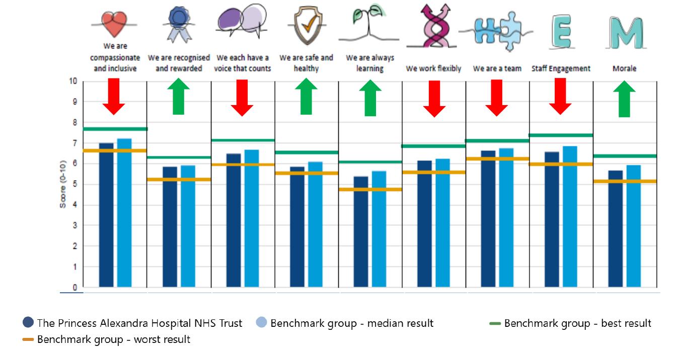 • Improvements in colleagues recommending PAHT as a place to work and to receive care or treatment, as demonstrated by our Staff Survey results