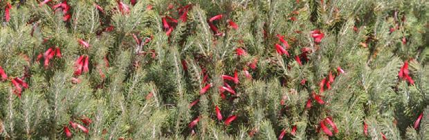 Jacksonia sternbergiana, J. furvellata and J. sericea Pollen and nectar used for food. Flowering: J.st. all year, J.f. Aug.-Mar., J.sericea Dec.-Feb.