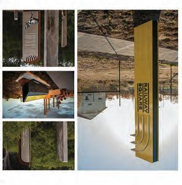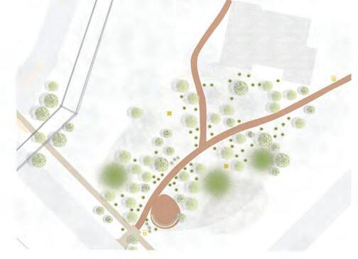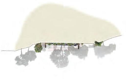 Perspective - Playfield Reserve dedicated Bee garden Playfield Reserve is located adjacent to the RSL Hall. A beautiful, sculptural memorial wall exists. The proposed design replicates this shape to provide connection to the RSL. Out of respect, approval to replicate this design would be required from the RSL and the original designer/artist. Its exterior would include a bee themed mural, while a curved seated area on the interior is proposed to observe the bee garden.