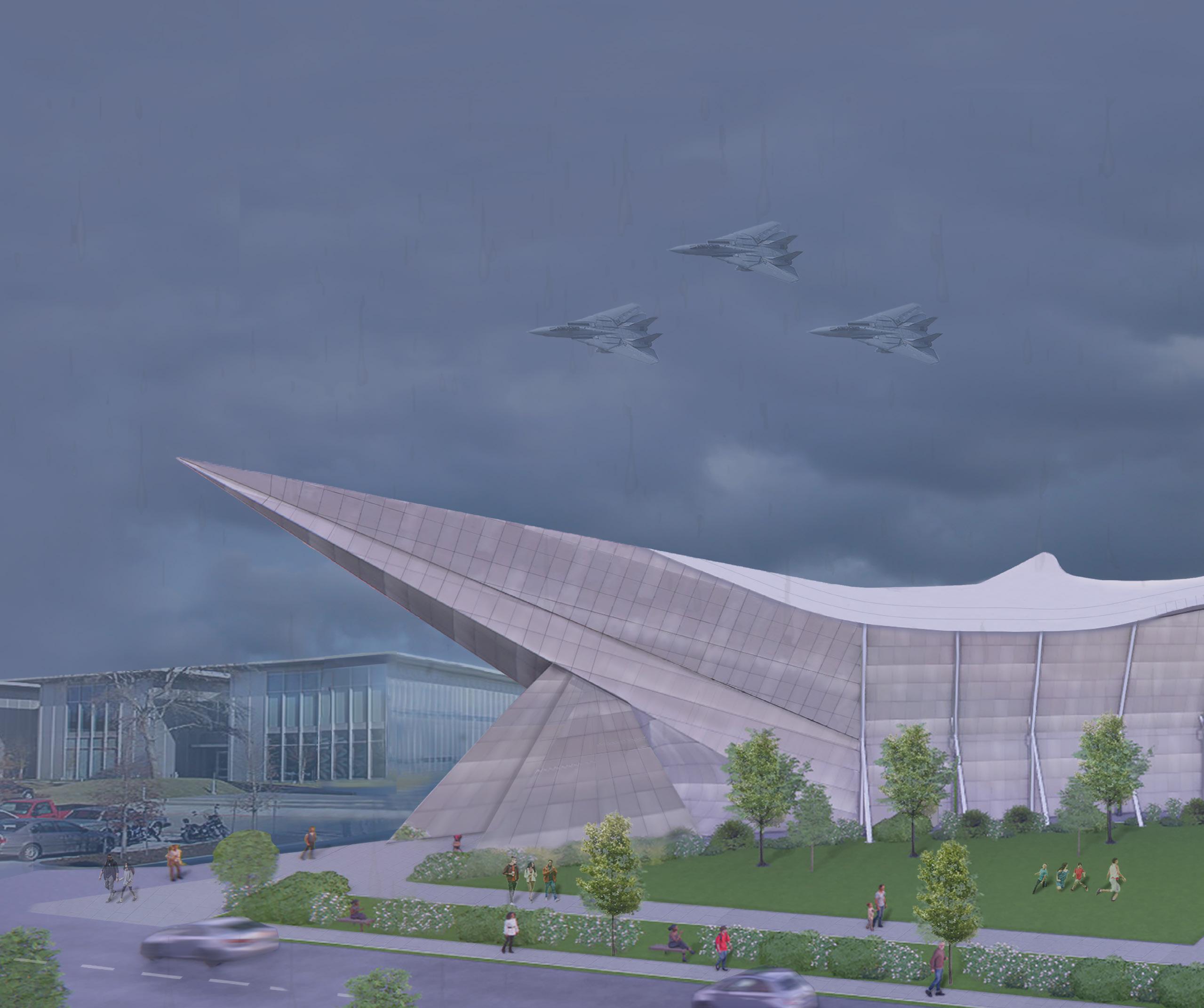 Set in the context of the Fort Worth Cultural District, the air force museum takes inspiration from the form of fighter jets and connects the ground to the sky through steep volumes. The sky comes down to become a part of the experience.