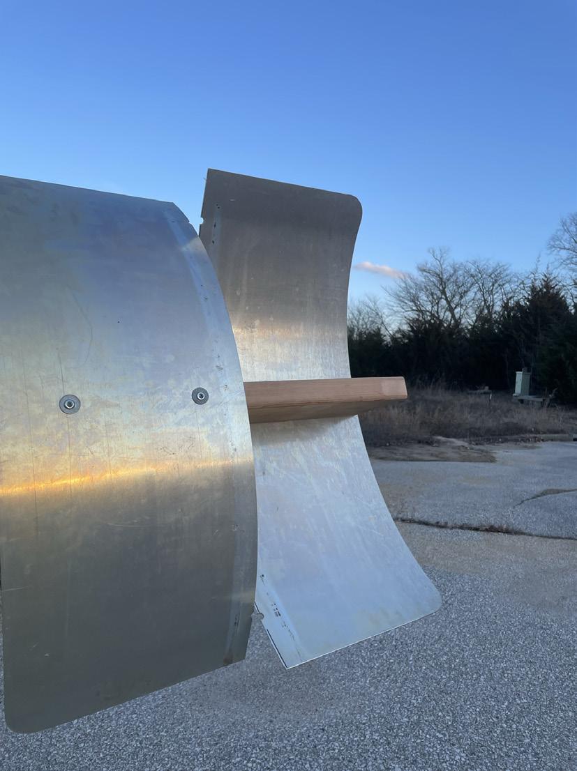 My groups initial idea was to angle the utility poles so they would open up to the prairie. Because of the tight budget, we created the roof structure out of recycled street signs which formed a weave resembling the prairie grass interlocking with eachother. As a group, we presented our idea to the city and community to gain feeback on the concept.