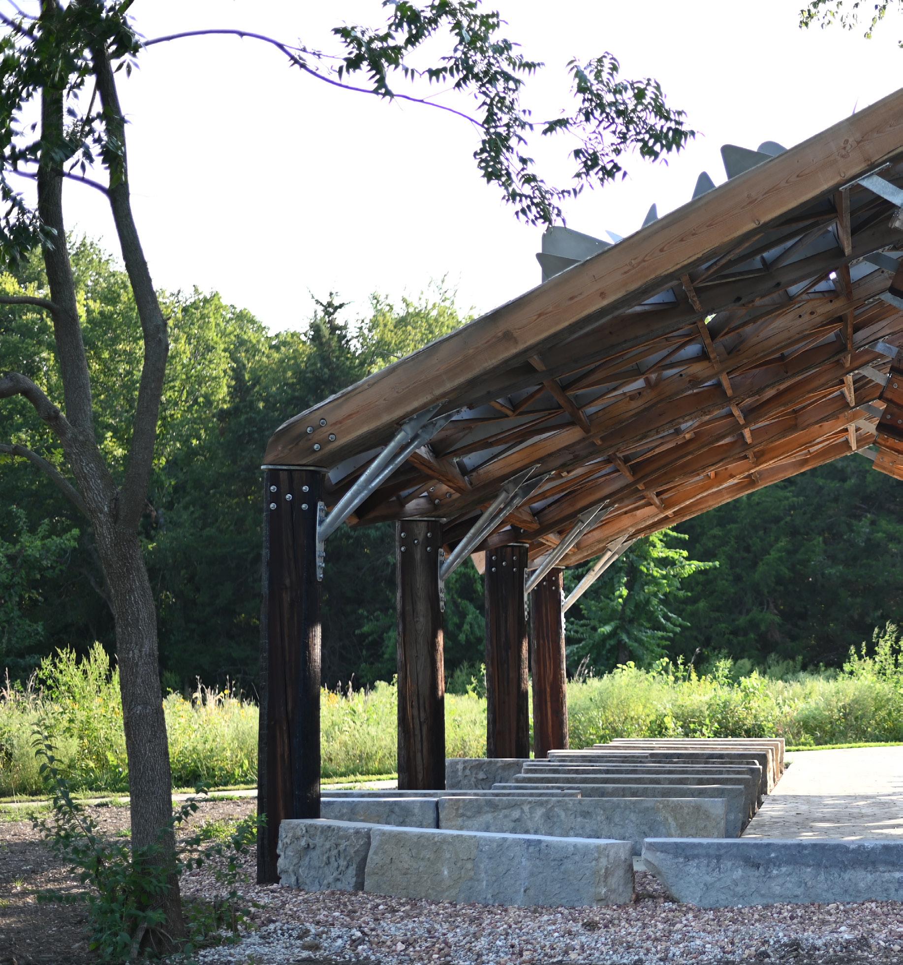 This project was a pavilion for Prairie Park Nature Center in Lawrence, Kansas to honor the remnant prairie and create a space for small gatherings, summer camps, and weddings.
