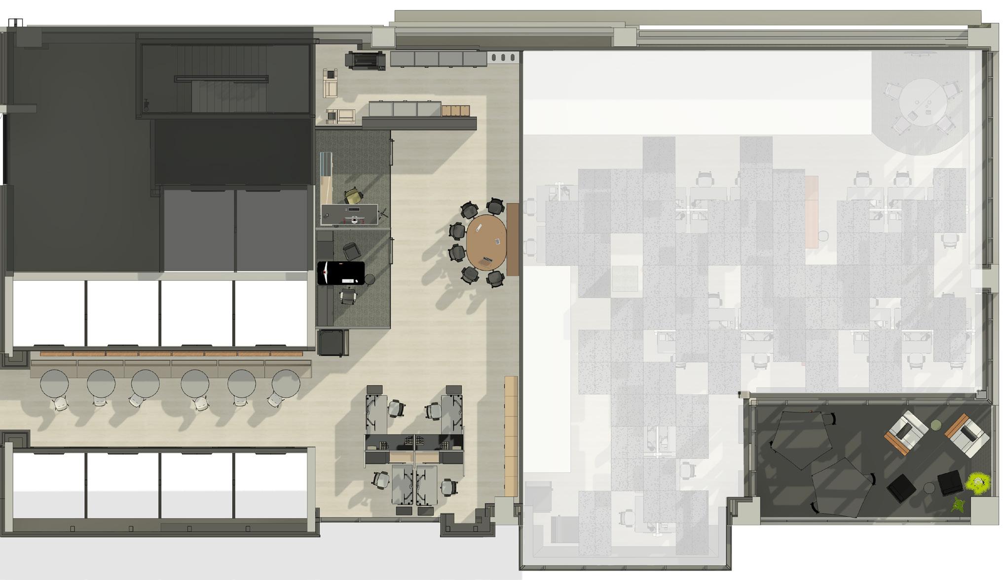 The concept of the space is to simulate different neighborhoods of Dallas. The reception space will replicate Victory Park. Workstations will take inspiration from Downtown, and Uptown will inspire the social spaces. The parts of the office that connect the “Downtown” and “Uptown” will take inspiration from Klyde Warren Park. To promote the most productive workplace, this office will have multiple work zones, various types of meeting spaces to support effective collaboration and offer digital to physical interactions among employees across the globe.