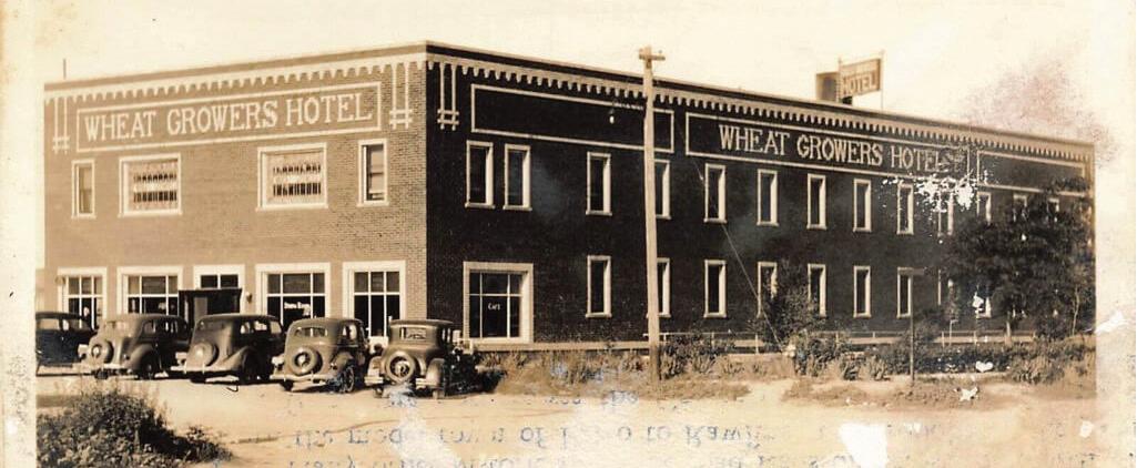 The Wheat Growers Hotel is situated near downtown Kimball, NE, placed on the corner of East First Street and South Oak Street. The hotel opened in 1918 and was owned by a famous wheat grower in the community. The hotel orginally contained 86 rooms and utilized communal bathrooms. A unique quality of this building is the four ventilation shafts along the center of the building.