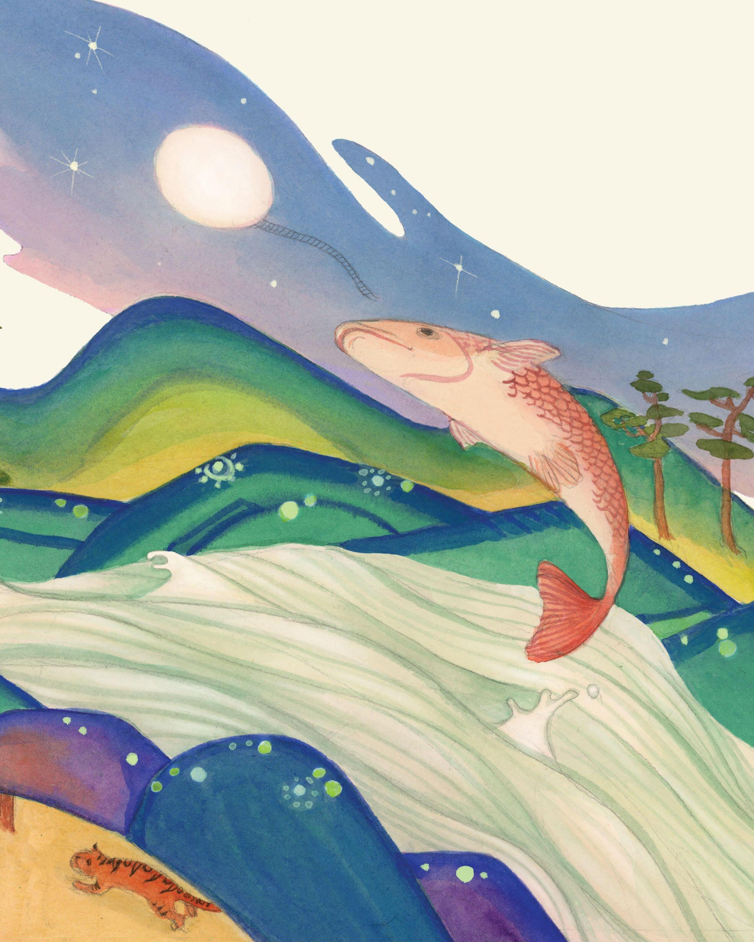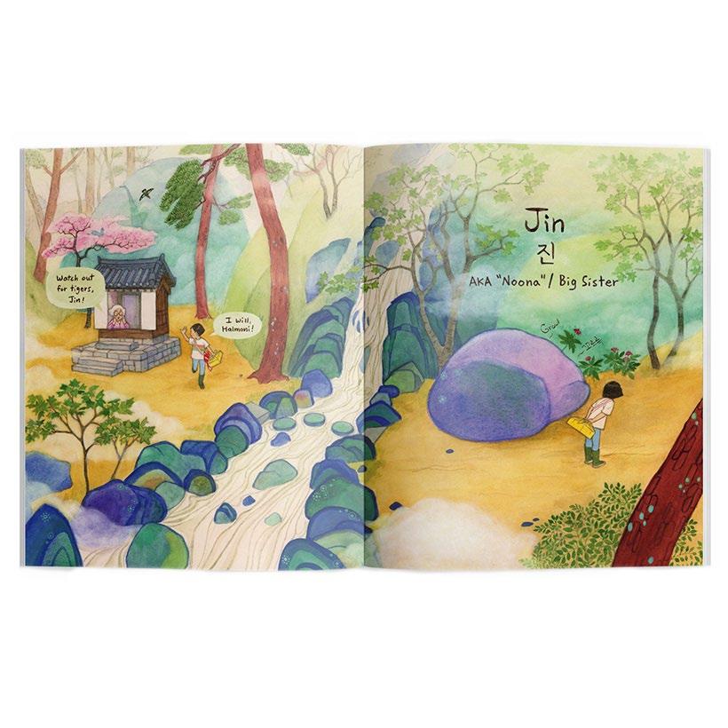 Luckily, Halmoni has a hunch. Jin goes on an errand through a magical portal into the wondrous world of Korean folktales with its dazzling landscapes and curious characters.