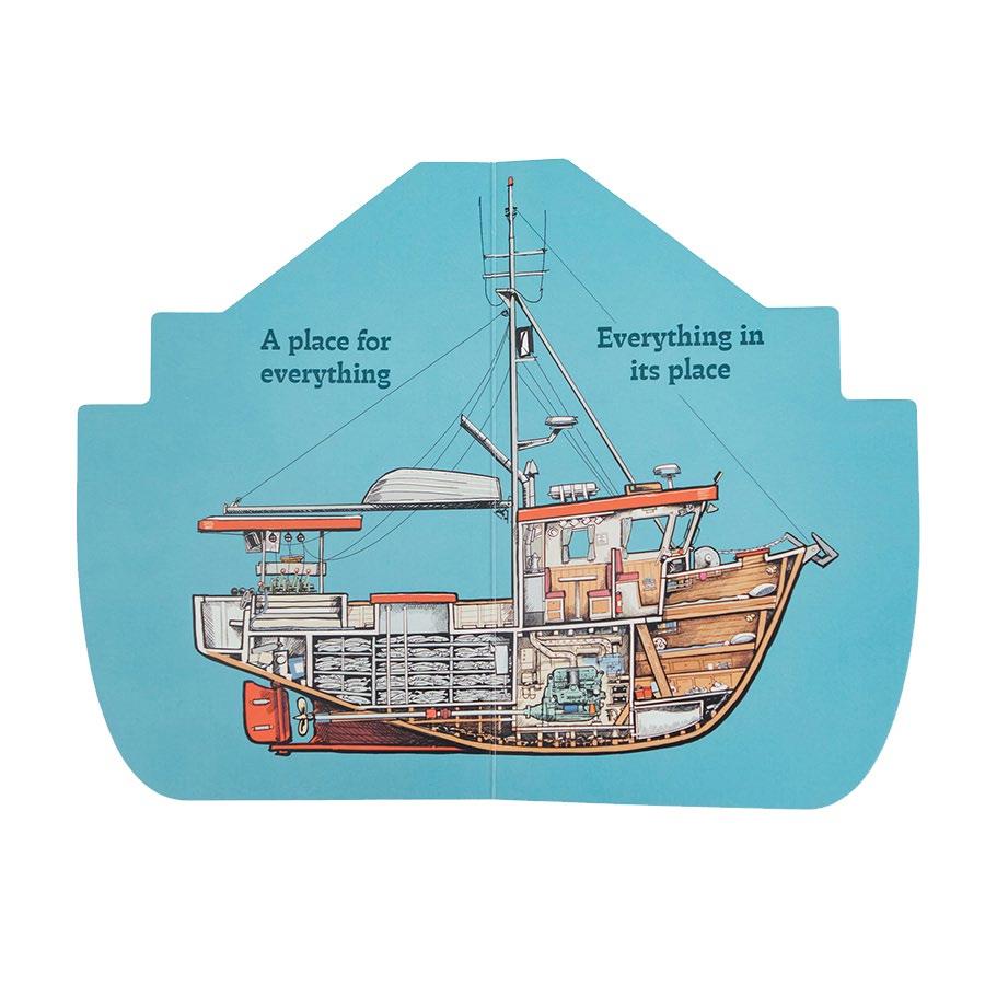 Look inside an amazing salmon troller in this board book shaped like a boat!