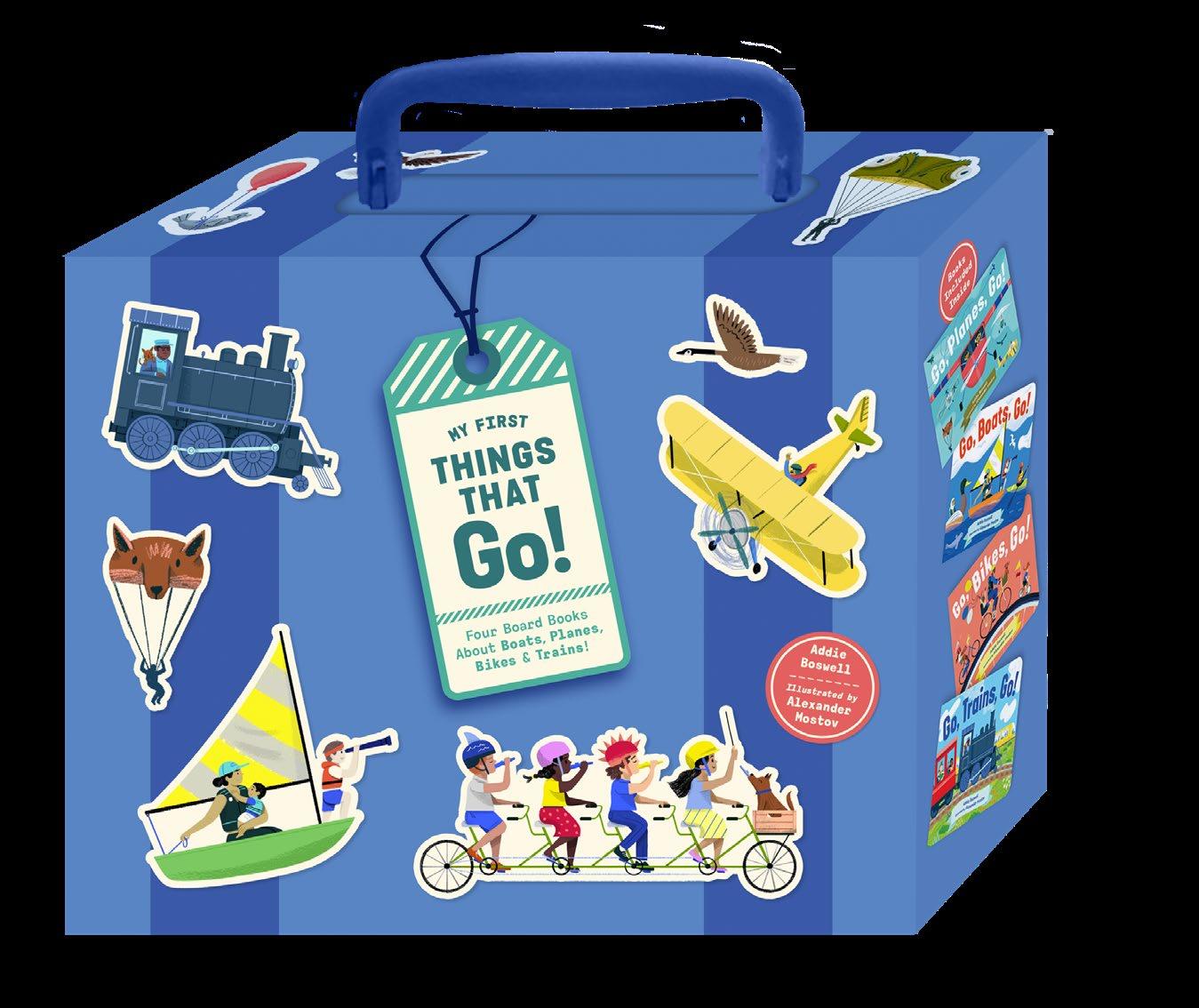 This playful four-book board book set introduces kids to the world of all types of things that go, from boats and planes to bikes and trains! Gift your locomotionobsessed toddler the box set of their dreams, complete with a handle for carrying these books on the go.