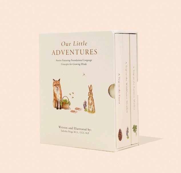 Created by licensed speech pathologist and watercolor artist Tabitha Paige, CCC-SLP, Our Little Adventure at Christmas takes parents and children through a sweet holiday story with woodland animal friends and teaches your child the value of giving. Through realistic watercolor imagery and a story carefully crafted by Paige, the book also incorporates basic vocabulary and early language concepts for young children to help develop their language skills. With its beautiful hand-painted illustrations and elegant, minimalist design, this sturdy board book will become a timeless classic in your children’s book library. The perfect gift for the little ones in your life at Christmas! KIDS • HOLIDAYS • EARLY EDUCATION ALSO AVAILABLE