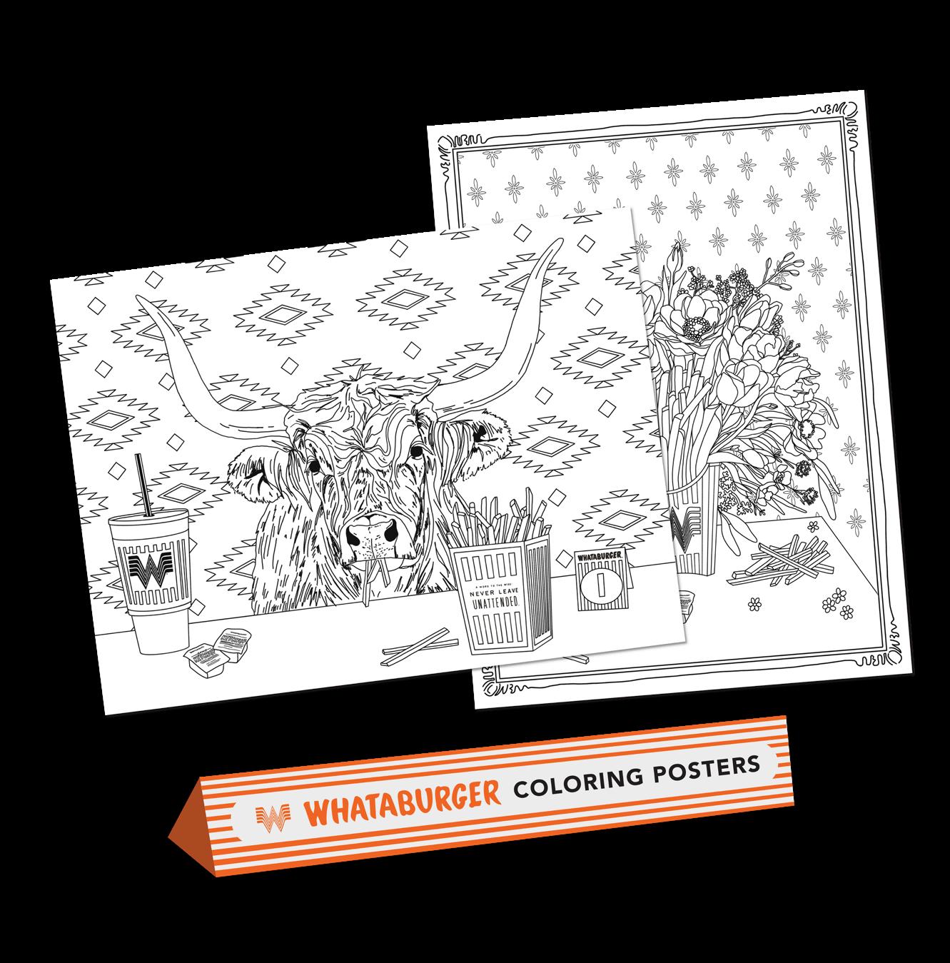 Dive into the delicious world of Whataburger with this two-pack of coloring posters that’s perfect for kids, families, and fans of all ages!