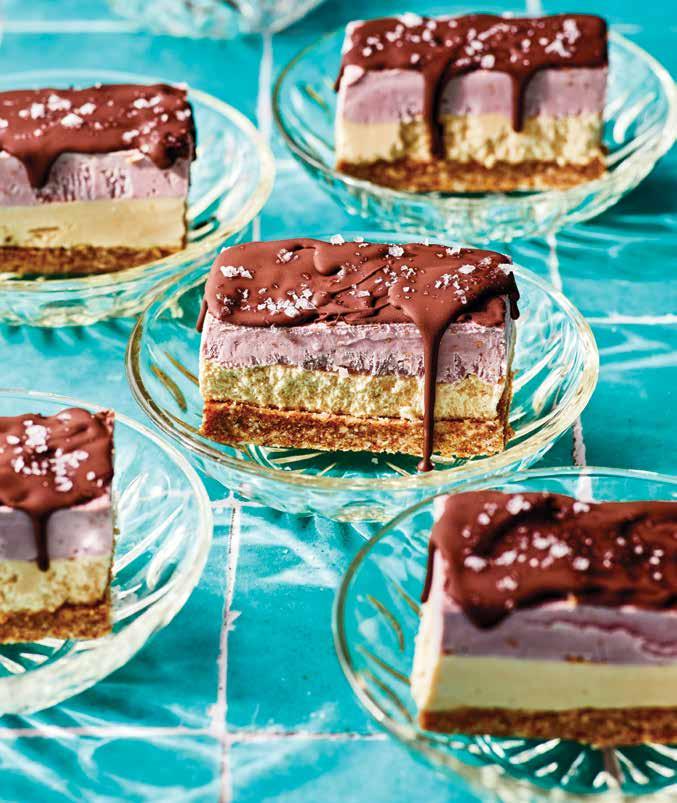 2 To make the crust, pulverize the graham crackers to a ne crumb, either in a food processor or with a rolling pin in a ziplock bag. Add the pistachios and lightly blitz or crush so there are still small bits remaining. Stir in the sesame seeds and sugar. Add the butter and mix with a spatula until everything is uniformly saturated.