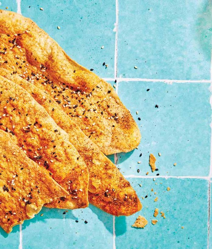 Pita Chip Nachos with Tahini Feta Queso and Chicken Shawarma, 29– 34