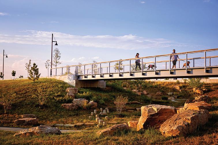 History comes alive at Prairie Retreat Park. Located on the final headgate of the 71-mile High Line Canal, the park will offer multiple recreational and educational spaces for residents and visitors. The park serves as a gateway to local regional trails, the Cottonwood Grove Picnic Area, and historical points of interest throughout its 35 acres.