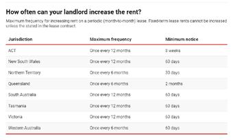 In every state and territory there are limits on when and how often your landlord can raise the rent.