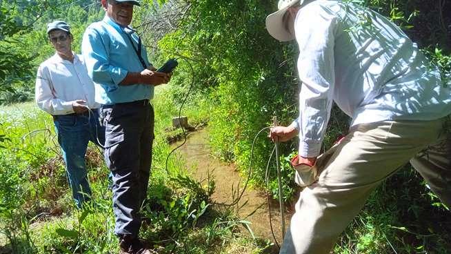 Como es habitual, las distintas comunidades solicitan durante la temporada de riego, que el equipo de terreno de Melado afore las aguas entregadas en los distintos sectores, a continuación, imagen de un aforo realizado en la comunidad Rabones durante este mes: