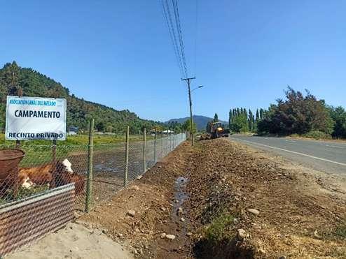 Durante este mes, se realizaron mejoras en el frontis del campamento de Melado en el sector de Llepo, se procedió a desmalezar con retroexcavadora y a reinstalar el cerco perimetral