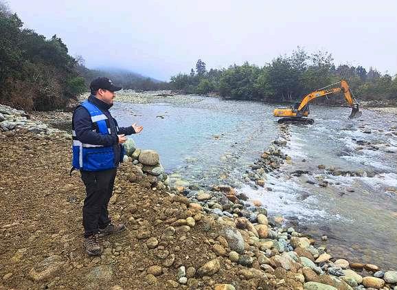 Para proteger la integridad de las compuertas automatizadas del canal Roblería, el día 29/07 se procedió a bajar la altura del taco en el río Ancoa con excavadora