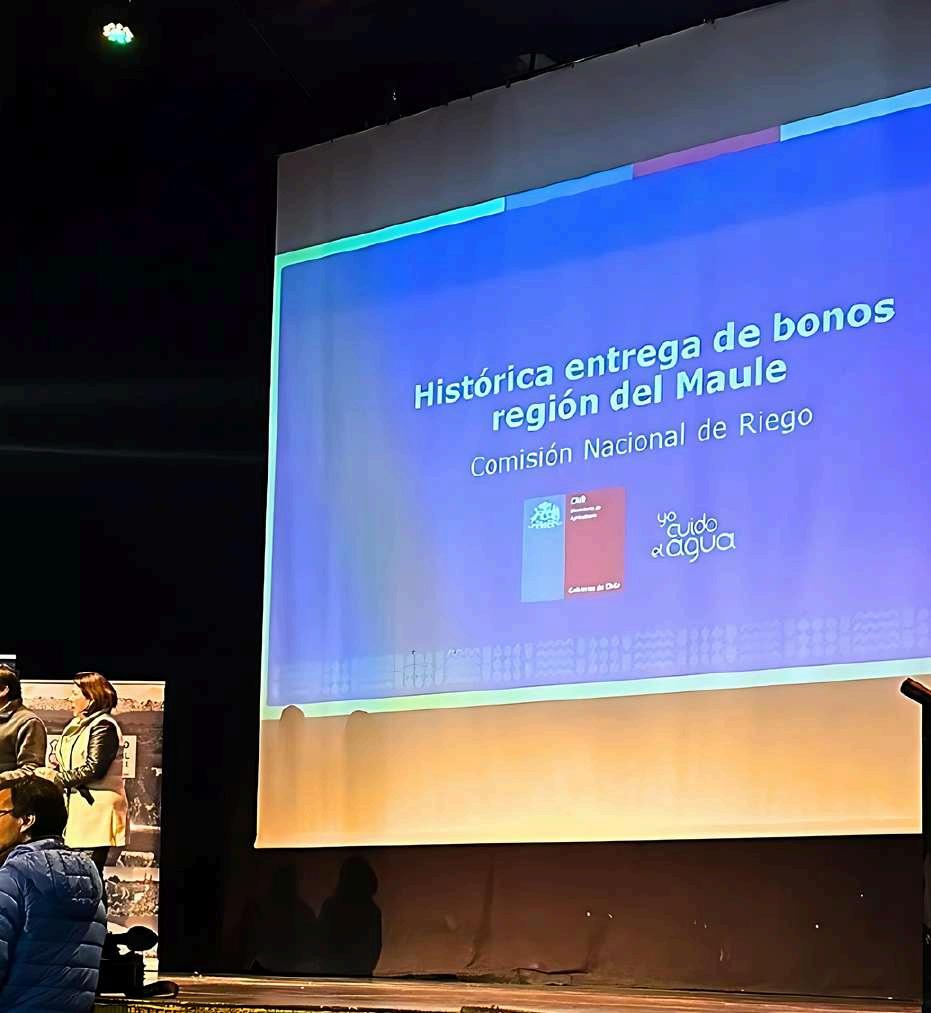 Ureta; el director CNR del Maule, Claudio Cortés y la alcaldesa de San Clemente, María Inés Sepúlveda. En la ocasión se hizo efectiva la entrega del Bono para la ejecución del proyecto de riego y conducción para la región del Maule