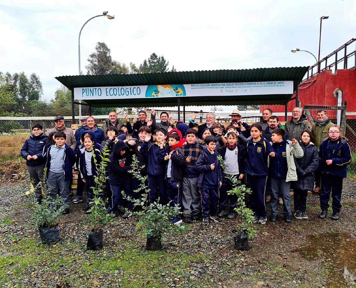 palabras de bienvenida a los presentes para posteriormente desplazarse hacia el lugar donde se emplaza el Punto Ecológico para realizar el corte de cinta, dando por inaugurada la iniciativa Asimismo, los presentes depositaron los primeros residuos junto a los alumnos de los quintos años básicos de la escuela, instancia cargada de alegría y optimismo