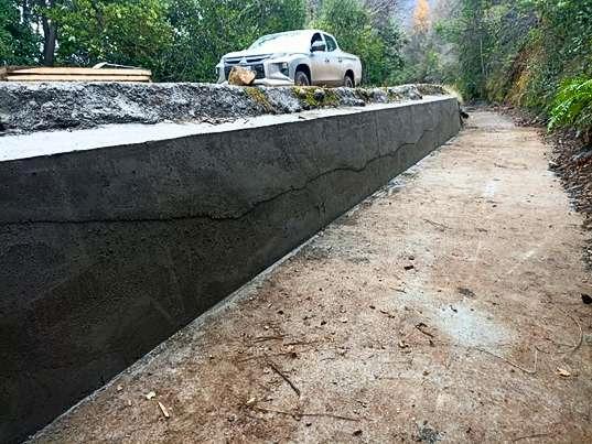Se realizó la construcción del muro en el km 4,5; muro de 20 metros con radier, también se realizó el ensanche del camino de borde en el km 4.