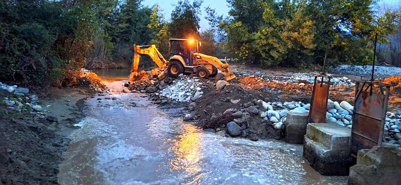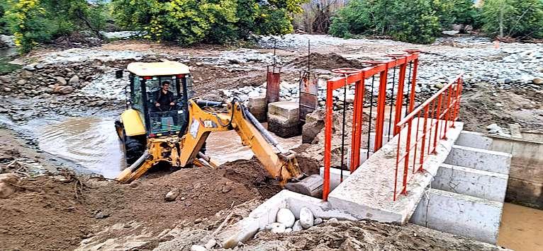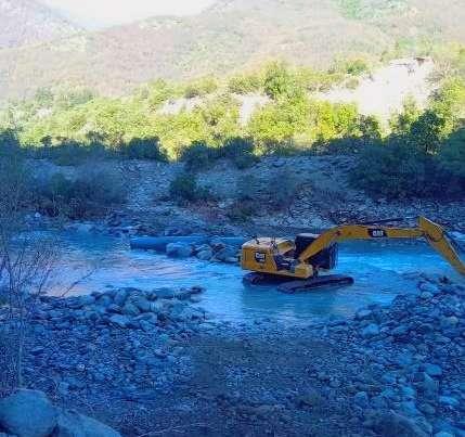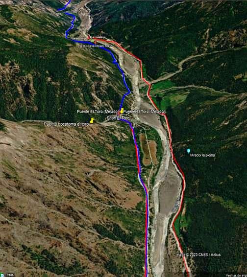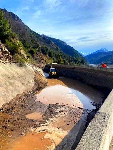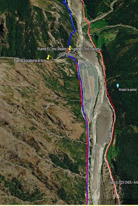 Para iniciar los trabajos en este punto fue necesario primero trabajar durante 9 días en el camino público que une el valle del Melado y posteriormente desviar el río a su cauce original, tarea no menor por el caudal del río que demoró el inicio de la reparación y el cruce de toda la maquinaria y camiones