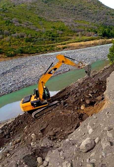 Se comenzó con la protección del borde de canal y peralte para hacer un nuevo camino de borde, y reforzar los tramos que socavó el río