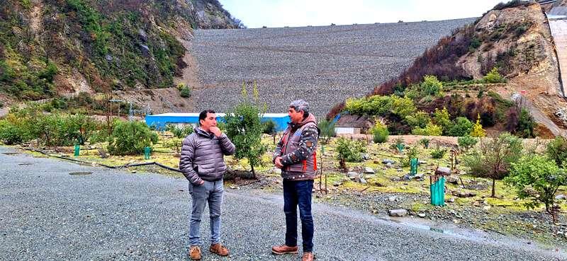 Antonio Ramírez Figueroa, presidente de la Junta de Vigilancia del río Ancoa, se reúne con el Administrador del Embalse para verificar el estado de la obra y evaluar los daños producidos por el temporal recién pasado.