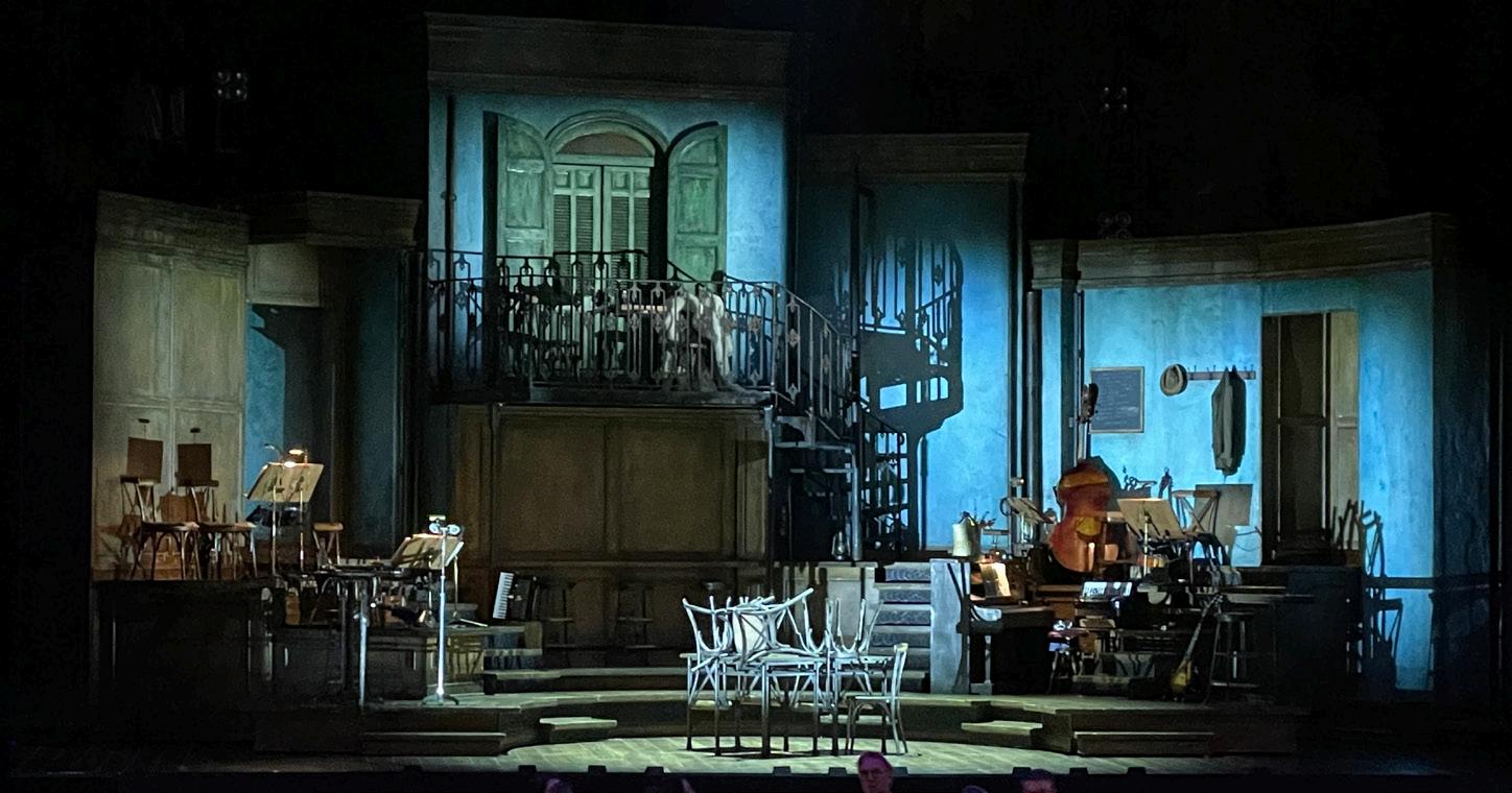 of warm tones to represent the heat of the Underworld, Orpheus is seen through dim, cool-toned lighting. It is no surprise that lighting played a key role in this show as Bradley King — a multi-award-winning lighting designer — spearheaded the design process. King utilized lighting in ways that made the audience feel like they were a part of the show rather than mere spectators.