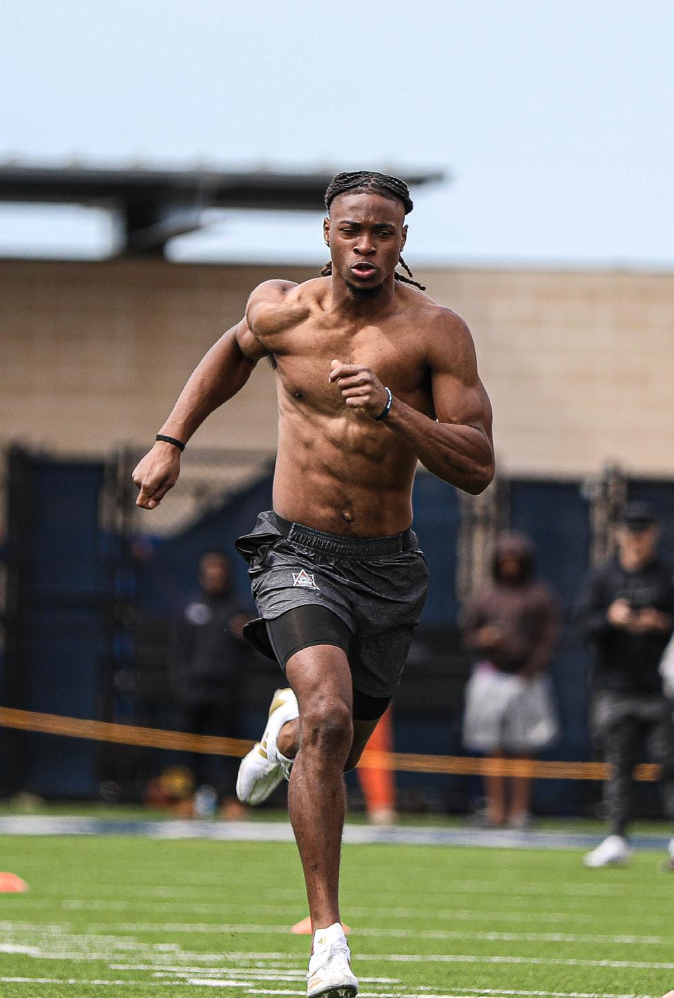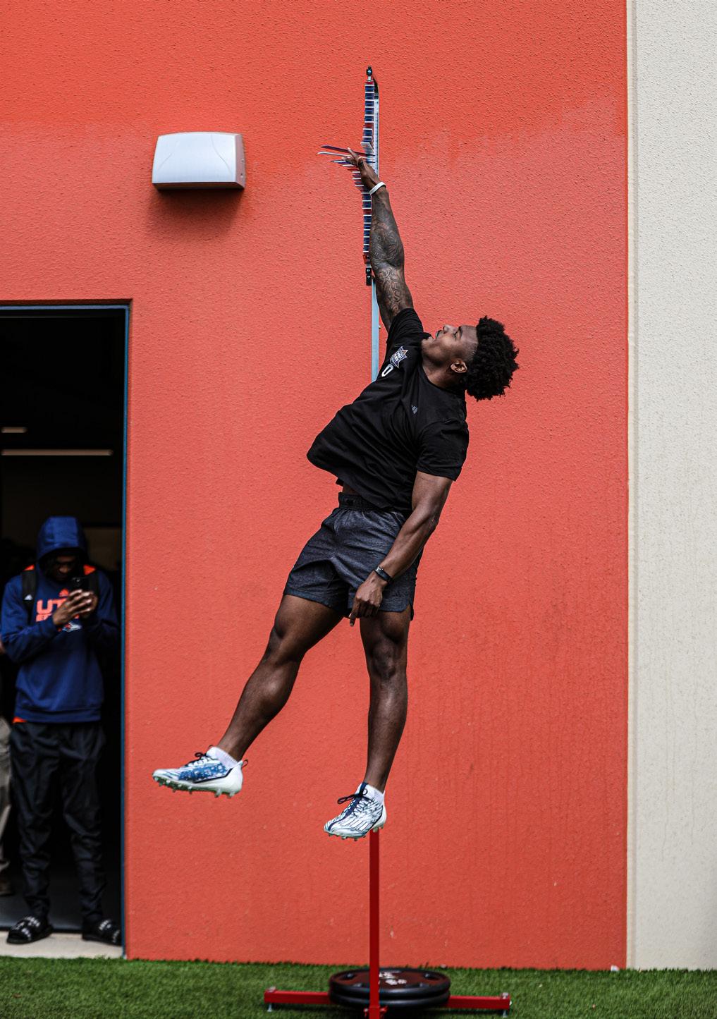 The next highlight of the day came from safety Rashad Wisdom in the vertical jump drill. Wisdom, despite being 5-foot-9, posted an impressive 37” vertical.