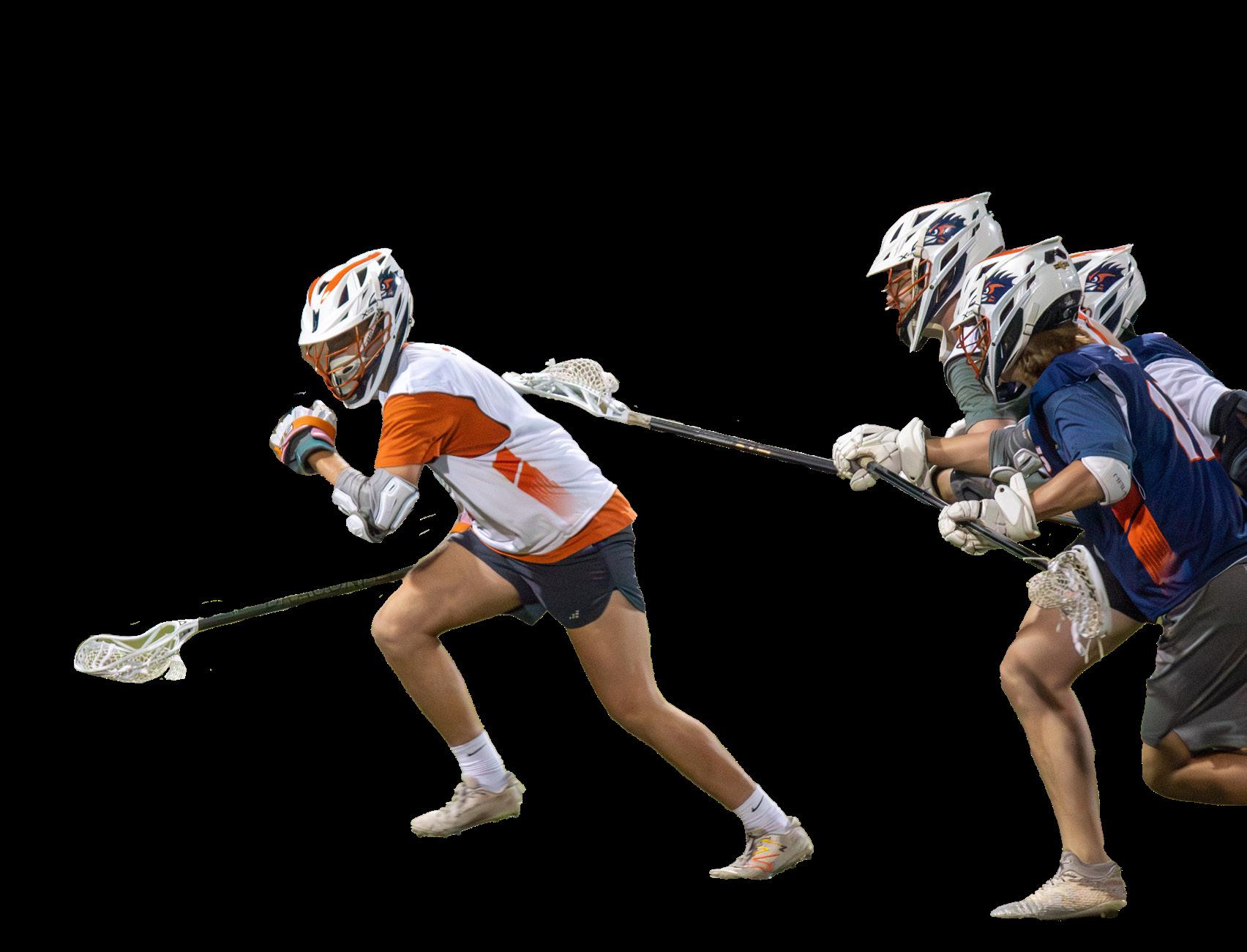 Men’s field lacrosse has 10 players on the field: one goalie, three defenders, three midfielders and three attackers. The defenders have longer poles, called d-poles or long poles,