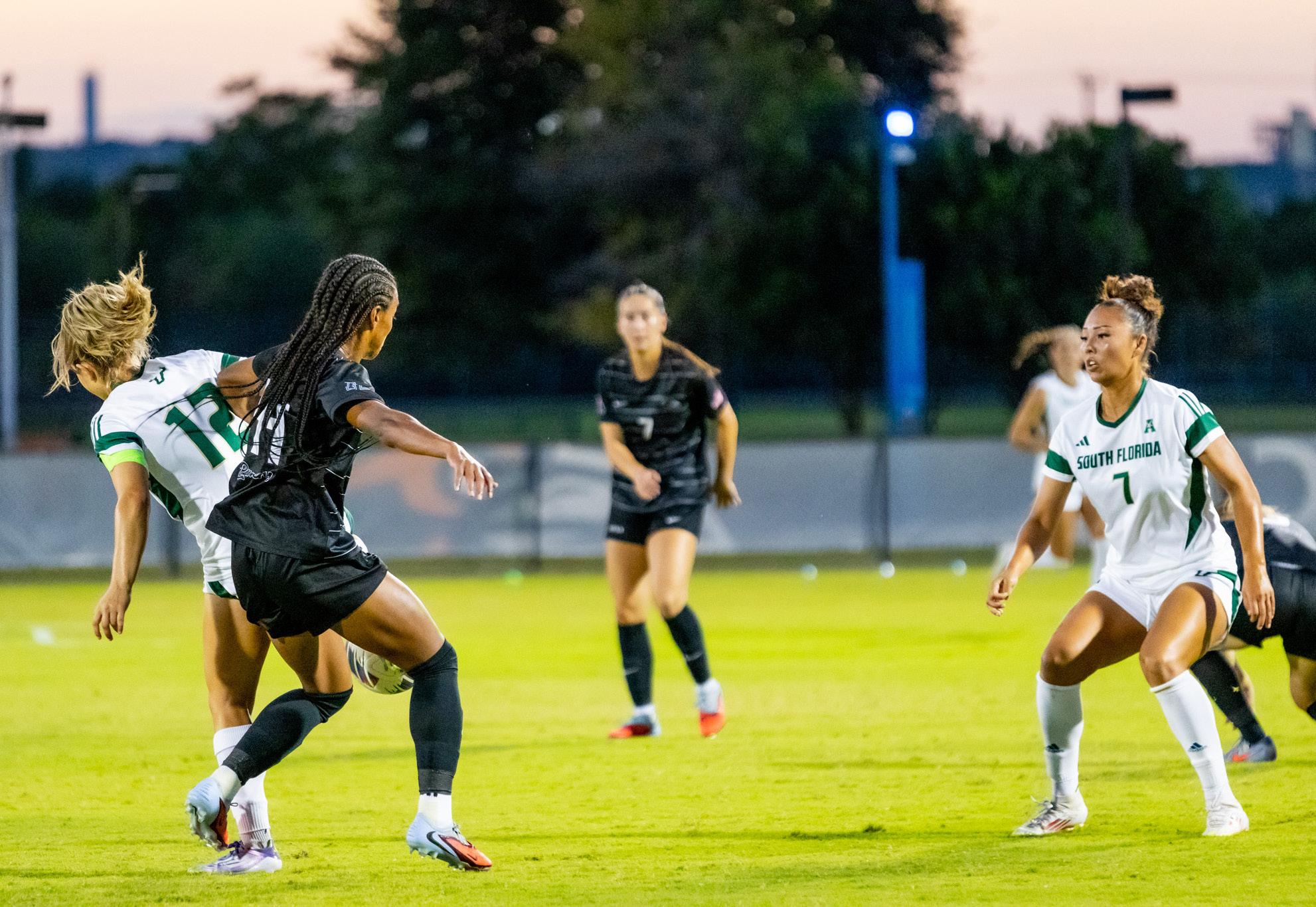 While South Florida (6-7-1, 2-3-1 AC) held a slight edge in possession — 55% to UTSA’s 45% — the Roadrunners generated more dangerous opportunities, pressing higher than usual and forcing turnovers in midfield. The first yellow card of the match came against UTSA senior defender Haley Lopez after a physical challenge in the center of the pitch.