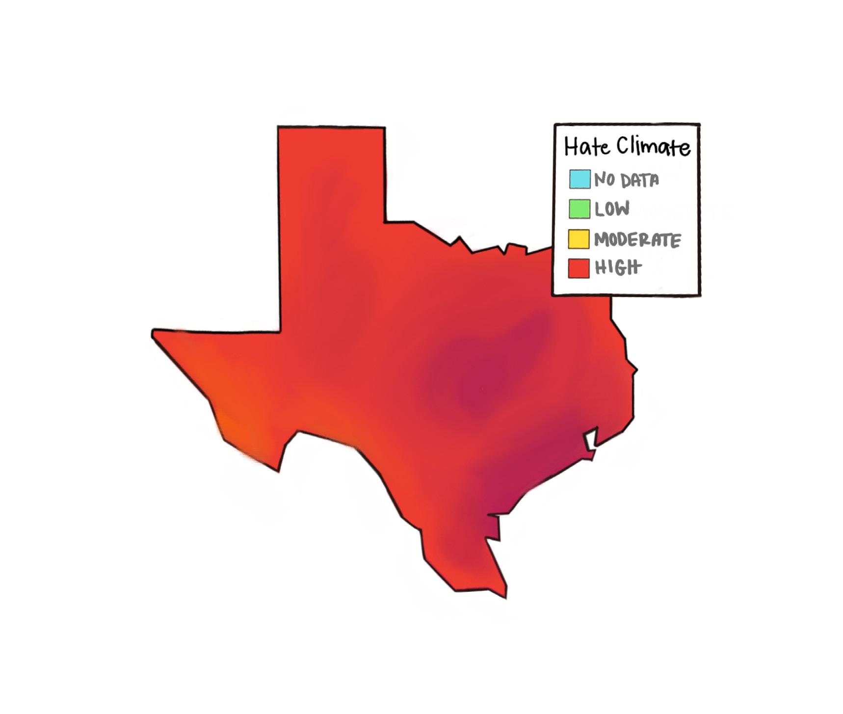In an FBI report from 2021, there were 542 reported hate crimes in Texas. It makes you wonder, how many hate crimes were not reported? But the statistics only get worse. In 2021 and 2022 there were two murders and six terrorist plots relating to extremism. Following these events was the tragic 2023 shooting of nine people by a man in Allen, Texas who bought into extremist ideologies.